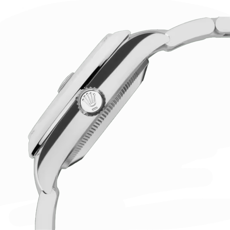 - جنس ساعت اویستر استیل (اویستر استیل از خانواده استیل 904L، آلیاژ بسیار مقاومی است که عمدتاً در فناوری پیشرفته، هوافضا و صنایع شیمیایی و جاهایی که حداکثر مقاومت در برابر زنگزدگی امری ضروری است، مورد استفاده قرار میگیرد)