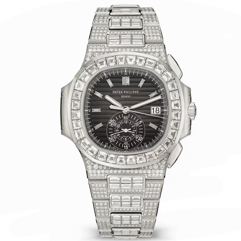 - نشانگرهای ساعت از طلای سفید مزین به الماسهای مستطیلی (0.18 قیراط)