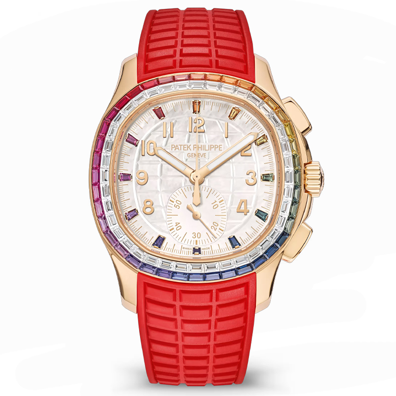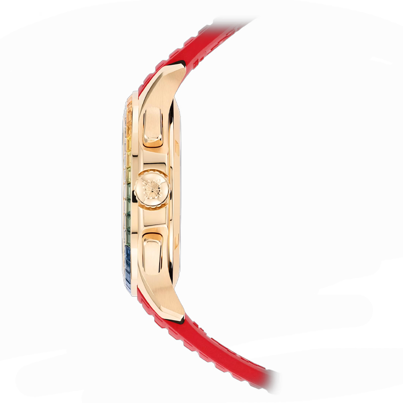 - نشانگرهای ساعت از جنس یاقوت کبود چند رنگ و مربعی شکل و اعداد رزگلد