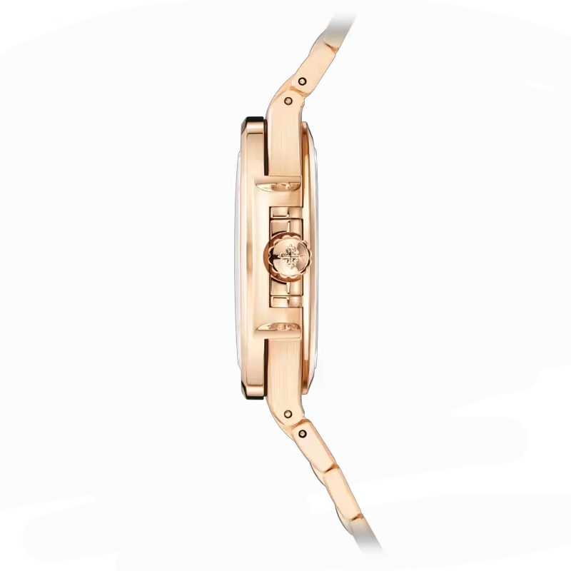 - اعداد و نشانگرهای ساعت رزگلد با روکش سفید شبتاب
