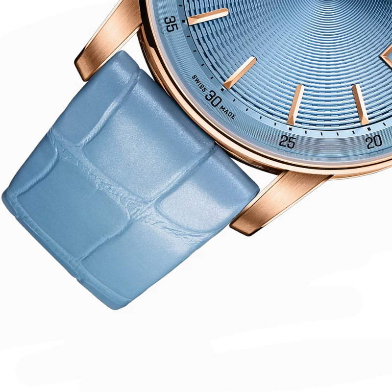 - نشانگرهای ساعت و عقربههای رزگلد با پوشش شبتاب